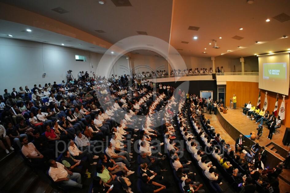 Ante un auditorio lleno, la rectora reconoció la labor de todas y de todos quienes hacen posible esta actividad que tiene una gran tradición en la institución, tras señalar que este evento, al igual que diversas acciones que se han concretado en la UMSNH no serían posible sin el trabajo colaborativo y en equipo, “porque de manera individual aquí, en la Universidad nada se puede lograr y el éxito del día de hoy efectivamente descansa en toda una comunidad nicolaita”.