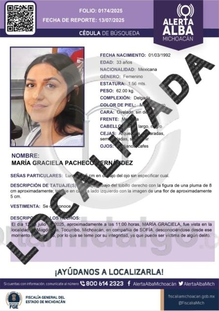 Fue por ello que, al tener conocimiento del hecho, se desplegó un operativo en diferentes municipios, entre ellos, Tocumbo, Cotija y Jiquilpan, en coordinación con la Defensa Nacional, Guardia Nacional, Guardia Civil y la Comisión Estatal de Búsqueda de Personas, para dar con el paradero de las mujeres, quienes esta mañana fueron liberadas en inmediaciones de Zamora; ambas se encuentran bien de salud.