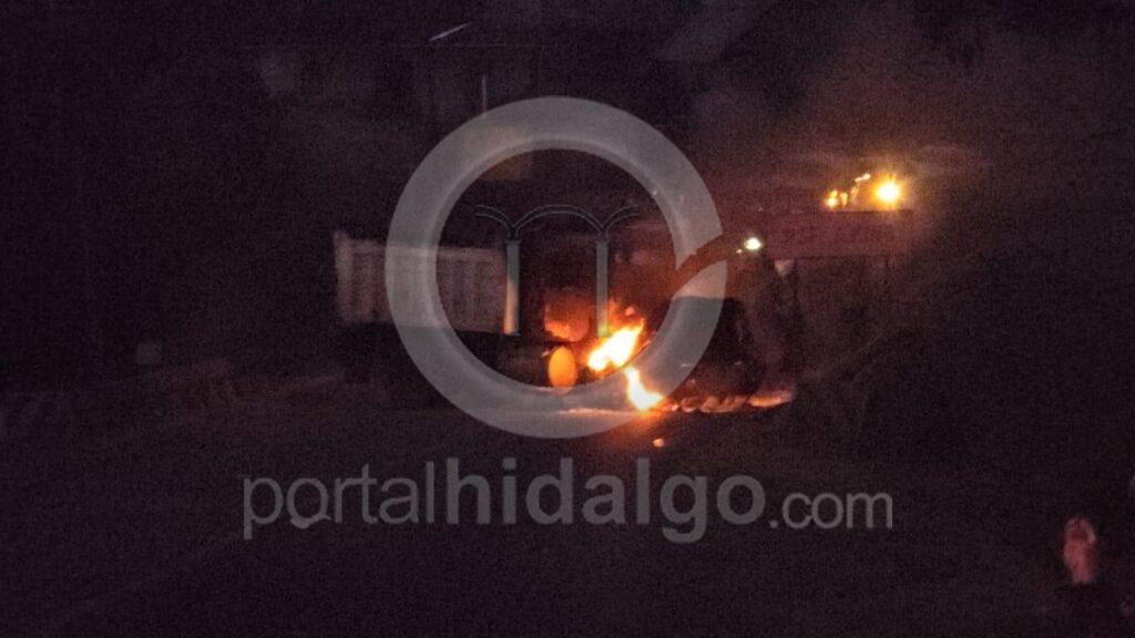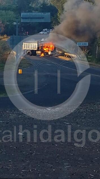 Trascendió que sobre la carretera Pátzcuaro-Uruapan, a la altura de la población de Ajuno, los delincuentes atravesaron un camión tipo volteo y lo quemaron.