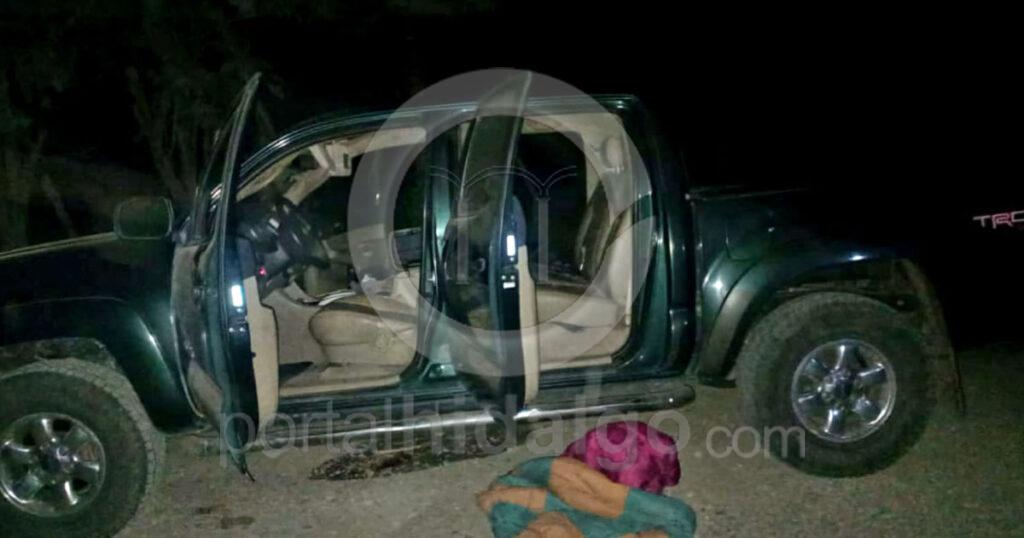 El área fue acordonada debido que también fue localizada baleada y con las puertas abiertas una camioneta Toyota Tacoma de color verde, con placas UDC-D86738, así como 50 casquillos percutidos 7.62 X 39.