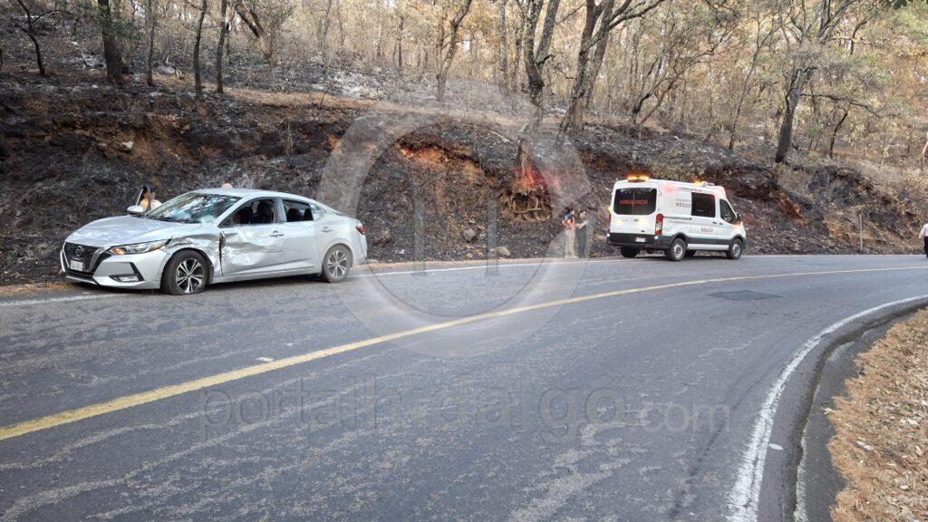 Quiroga, Mich.-La tarde de este domingo se registró el choque entre un vehículo particular y una motocicleta sobre la carretera Quiroga-Zacapu, con un saldo preliminar de tres personas lesi0nadas.