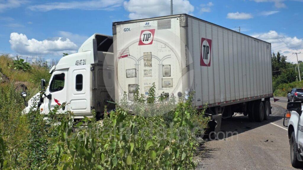 Trascendió que las unidades involucradas en el percance son un automóvil Nissan, Versa, de color guinda, con placas PPY-901-C y un tráiler de color blanco, cuyo conductor fue requerido.
