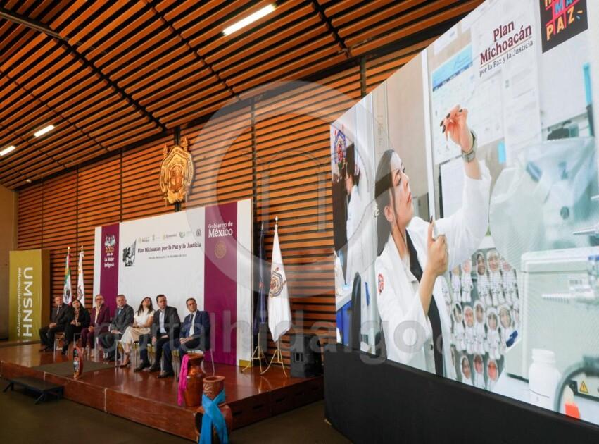 En este marco, la rectora señaló que la UMSNH es el corazón intelectual del Plan Michoacán, tras referir que la paz duradera no se construye solamente con seguridad; se construye con oportunidades, con desarrollo y con educación. “La nuestra es una revolución pacificadora, nuestras armas son las ideas y las patentes, y nuestra estrategia es la innovación. Y esta ofensiva social, cultural y educativa, tecnológica e innovadora no la derrota nadie, tiene raíces profundas, largo aliento y sostenibilidad que trasciende a través de las generaciones”.