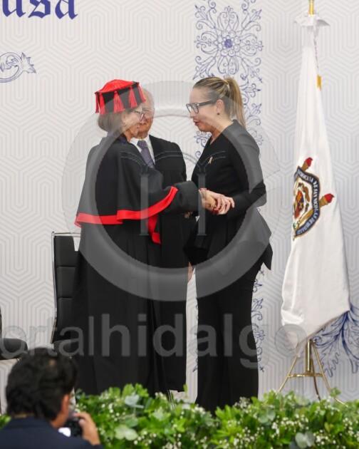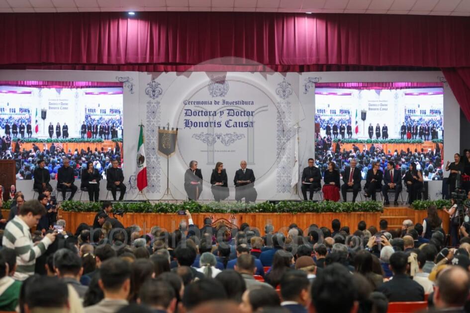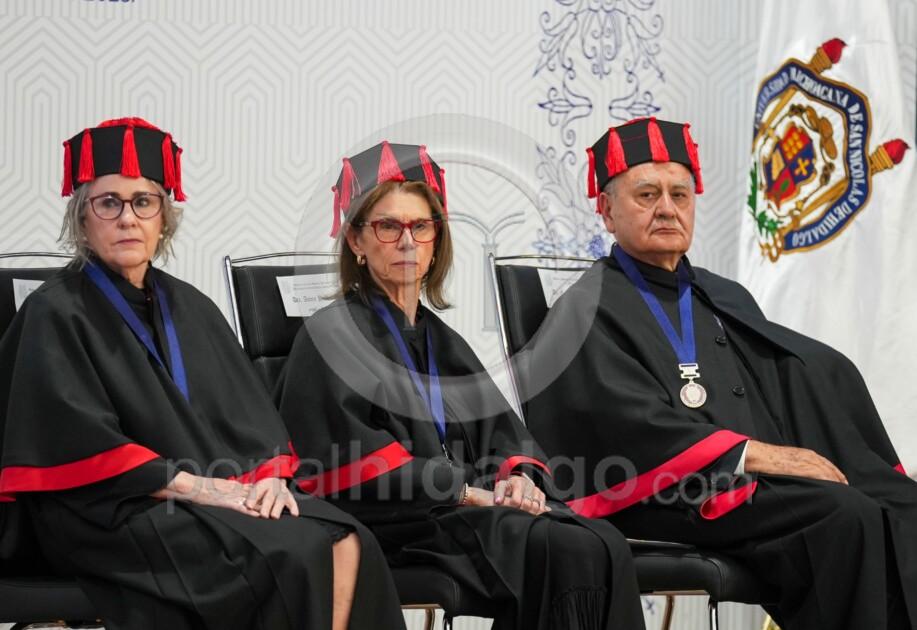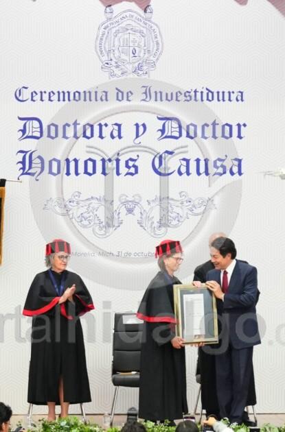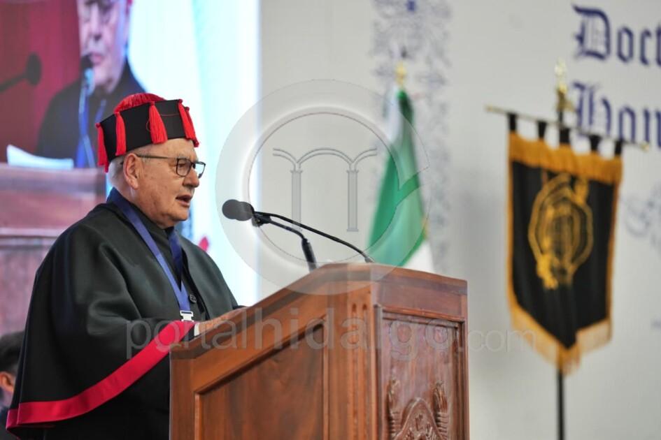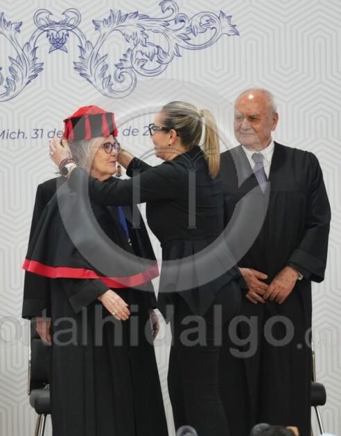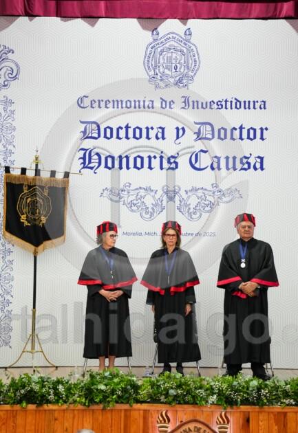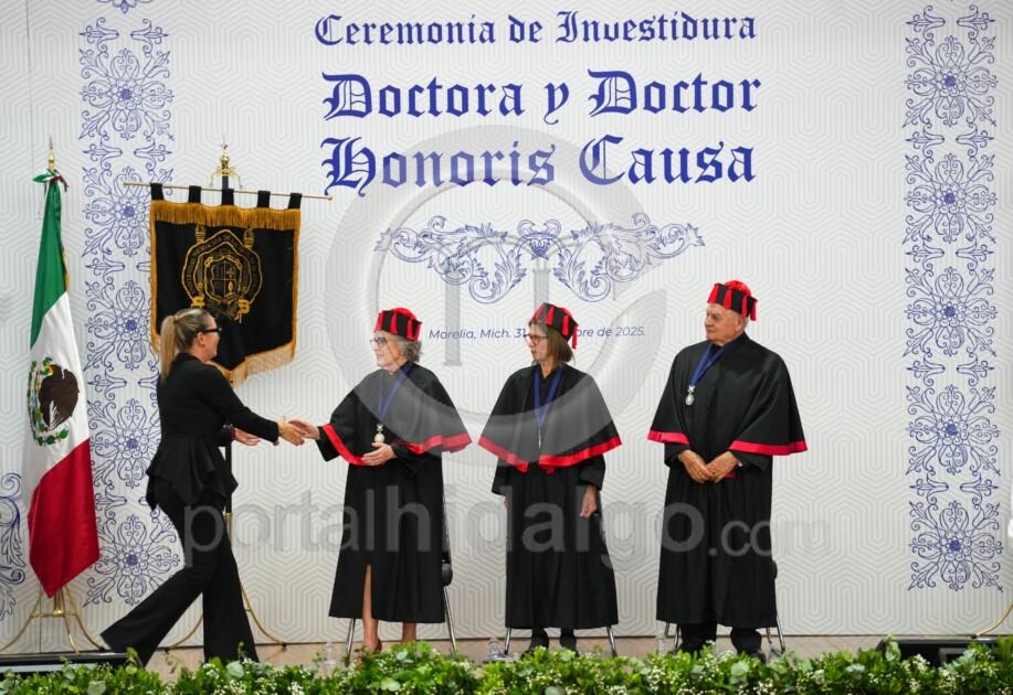 El Doctorado Honoris Causa, añadió, es memoria y es futuro, es el reconocimiento de una trayectoria excepcional y simultáneamente, es una promesa de que sus valores, dedicación y pasión por el conocimiento seguirá inspirando a las generaciones venideras. “Miren bien a quien hoy honramos, son espejo del porvenir, son ejemplos vivientes de que la dedicación académica puede transformar sociedades, son la prueba irrefutable de que Michoacán desde su Universidad contribuye al conocimiento universal”.