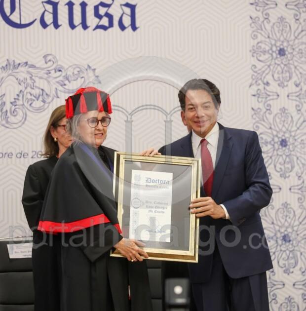 La funcionaria indicó que el Doctora Honoris Causa se entrega por la obra que una persona ha producido, tras destacar que este reconocimiento es una tradición muy importante en las universidades. “Felicitar a los recipiendarios, tenemos a una brillante arquitecta que ha hecho una labor fundamental, tenemos a un historiador, que me da mucho gusto que se reconozca también una actividad tan importante como es esta actividad humanìstica, la historia, a mi amiga y compañera de la Facultad de Ciencias, Annie Pardo que es una científica, yo creo que es fundamental este reconocimiento”.