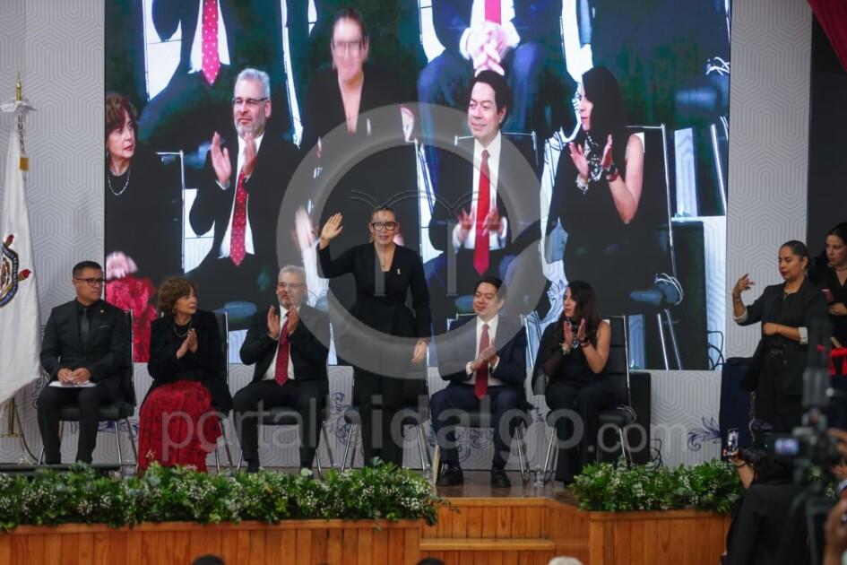 Durante la ceremonia de investidura, se contó con la presencia del gobernador del Estado, Alfredo Ramírez Bedolla, del secretario de Educación Pública, Mario Delgado Carrillo, de la secretaria de Ciencia, Humanidades, Tecnología e Innovación, Rosaura Ruiz Gutiérrez, de la rectora Yarabí Ávila González, así como de la presidenta de la Mesa Directiva del Congreso Local, Giuliana Bugarini.