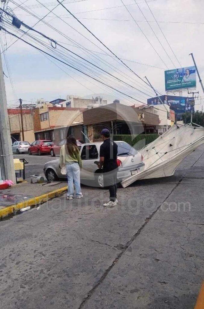 El primero de los percances tuvo lugar sobre la avenida Lázaro Cárdenas esquina calle 13 de Septiembre de 1847, a la altura de la colonia Chapultepec Sur, donde un auto colisionó contra una carpa plegable de un puesto de comida callejera, afortunadamente no hubo civiles lastimados.
