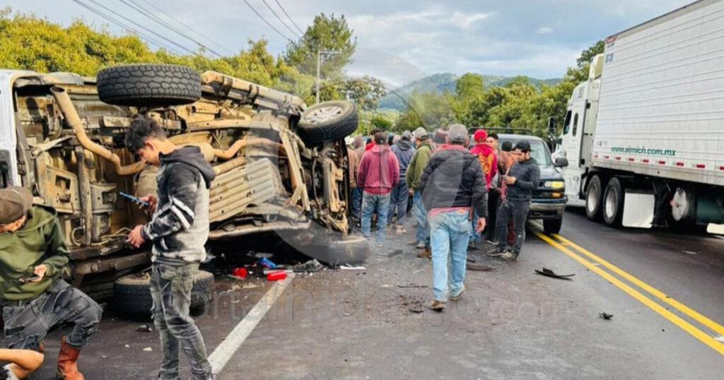 Violento choque entre camioneta de jornaleros y camión aguacatero deja siete h3ridos