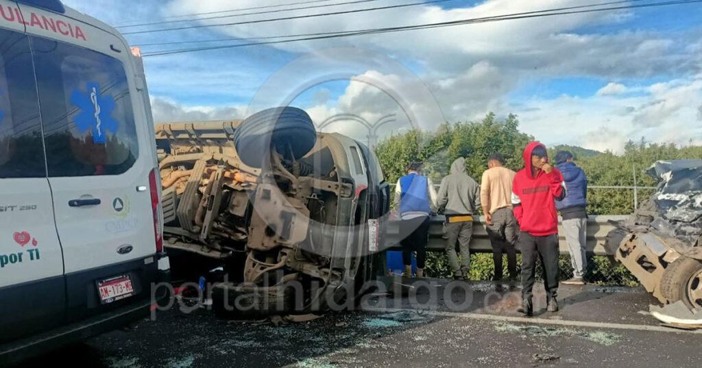 Violento choque entre camioneta de jornaleros y camión aguacatero deja siete h3ridos