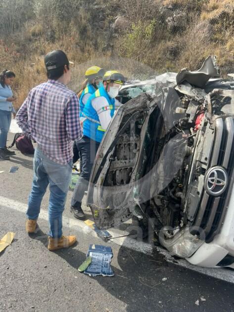 El accidente fue a la altura del kilómetro 50, donde paramédicos de AMBUMED Autopistas Michoacán encontraron una camioneta Toyota, color blanco y con placas del estado de Guanajuato, severamente dañada tras quedar fuera de la carpeta asfáltica.
