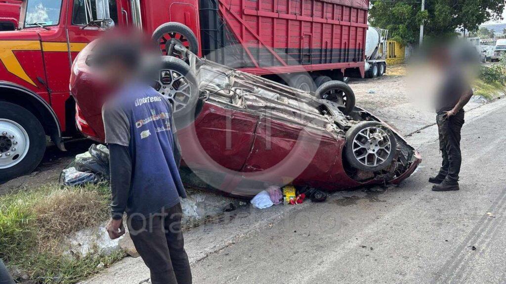 Tarímbaro, Mich.-Una volcadura automovilística dejó al menos cuatro personas lesi0nadas entre ellas dos mujeres y una niña, sobre la carretera Morelia-Salamanca dentro de este municipio.