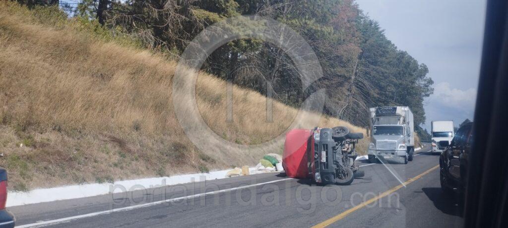 Uruapan, Mich.-Sólo daños materiales dejaron dos volcaduras de camionetas ocurridas durante las últimas horas sobre la autopista Siglo XXI y la carretera “libre” Uruapan-Gabriel Zamora.