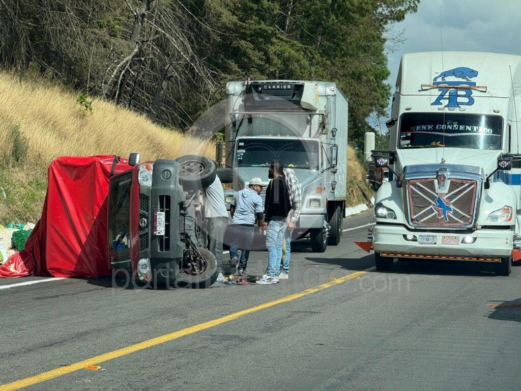 Uruapan, Mich.-Sólo daños materiales dejaron dos volcaduras de camionetas ocurridas durante las últimas horas sobre la autopista Siglo XXI y la carretera “libre” Uruapan-Gabriel Zamora.