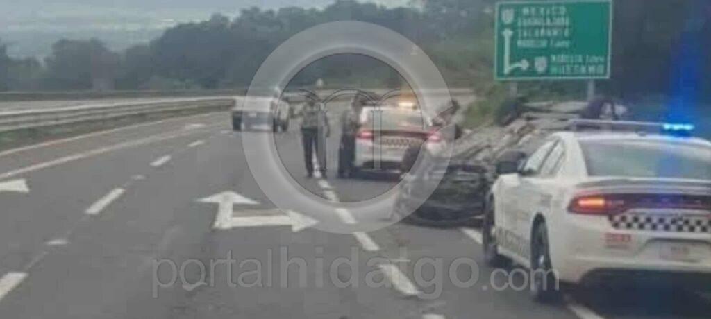 Pátzcuaro, Mich.-Un automóvil volcó sobre la Autopista Siglo XXI, tramo Pátzcuaro-Uruapan, percance que no dejó lesionados únicamente daños materiales, mencionaron fuentes de rescate.