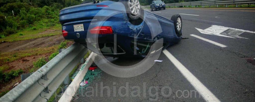 Pátzcuaro, Mich.-Un automóvil volcó sobre la Autopista Siglo XXI, tramo Pátzcuaro-Uruapan, percance que no dejó lesionados únicamente daños materiales, mencionaron fuentes de rescate.