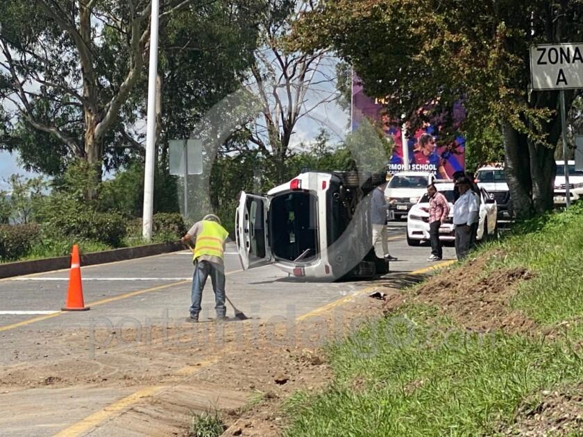 El hecho se registró durante la mañana de este jueves y varios automovilistas lo reportaron al número de emergencias 911. Después acudieron patrulleros y paramédicos, quienes revisaron la salud del conductor, mismo que resultó ileso.