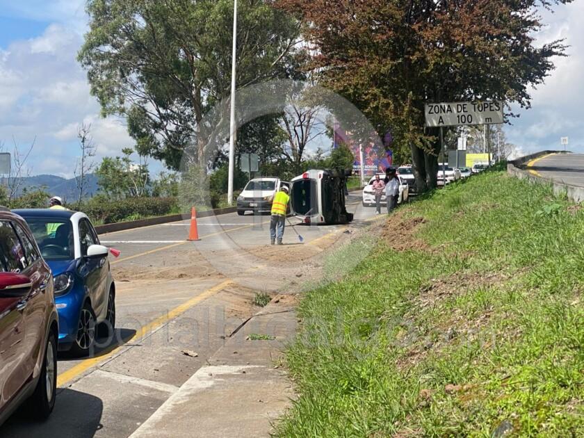 El hecho se registró durante la mañana de este jueves y varios automovilistas lo reportaron al número de emergencias 911. Después acudieron patrulleros y paramédicos, quienes revisaron la salud del conductor, mismo que resultó ileso.