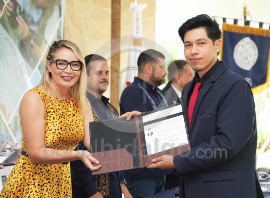 Ante las y los recién graduados señaló que, este momento significa la conclusión de un camino lleno de esfuerzo, de sacrificio, pero que también marca nuevas responsabilidades, nuevos compromisos y metas, por lo que los invitó a seguirse preparando.