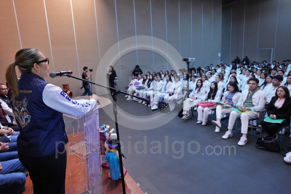 Ahí, manifestó que, hoy es un día muy importante para las y los alumnos, ya que tomarán una decisión que es parte de los resultados y del esfuerzo que realizaron desde el ingreso a la facultad. En este sentido, las y los invitó a que la atención que brinden la den con vocación, con pasión y con responsabilidad, al referir que trabajarán con recurso humano y una palabra puede hacer la diferencia para impulsar y ayudar o tener un impacto negativo en una persona.
